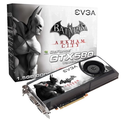 ... EVGA GeForce GTX 580 SuperClocked with Free Batman: Arkham City Game Download coupon included, 1536 MB GDDR5, ... mini HDMI and PCI-E 2.0 SLI Graphics Card ...